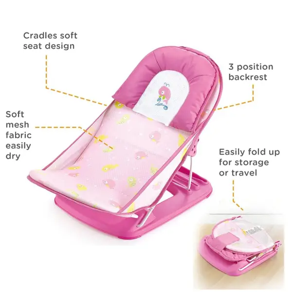 این صندلی با قابلیت تنظیم پشتی در سه حالت نشسته، لم داده و خوابیده این امکان را به شما میدهد تا از روز اول تولد تا دوسال برای شستشو راحتر نوزاد از آن استفاده کنید.