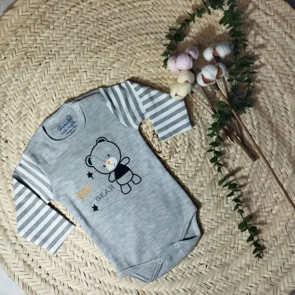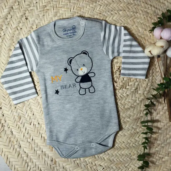 امروزه جهان و تمامی کشور های برتر در زمینه تولید و عرضه پوشاک اغلب پوشاک خود را از جنس نخ پنبه (Cotton) استفاده می کنند و جنس بسیار خوب این محصول باعث شده تا در تمامی کشور ها از آن استفاده کنند همچنین تنها پارچه ایی که از حساسیت و بروز قارچ و باکتری جلوگیری میکند پارچه نخ پنبه است و ما به شما اطمینان میدهم تمام محصولات برند هیرو از پارچه نخ پنبه اعلا و دورو بافت تهیه شده است. این محصول در سایزهای مختلف و متنوع مناسب کودکان تازه متولد شده تا 1 ساله می باشد و می توانید مناسب ترین سایز را بر اساس سن و جدول سایز بندی برای کوچولوی خود انتخاب کنید. آستین بلند زیر دکمه دار طرح خرس ملانژ هیرو hero تولید شده از پنبه می باشد، بسیار نرم و لطیف می باشد و کودک شما با پوشیدن این آستین بلند زیر دکمه احساس راحتی و آرامش خواهد داشت.