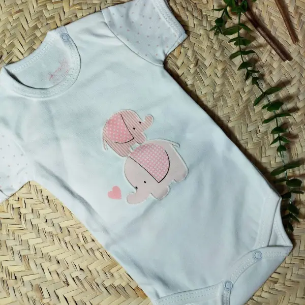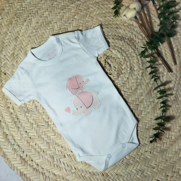 آستین کوتاه زیر دکمه دار طرح بچه فیل هیرو (بادی کوتاه)