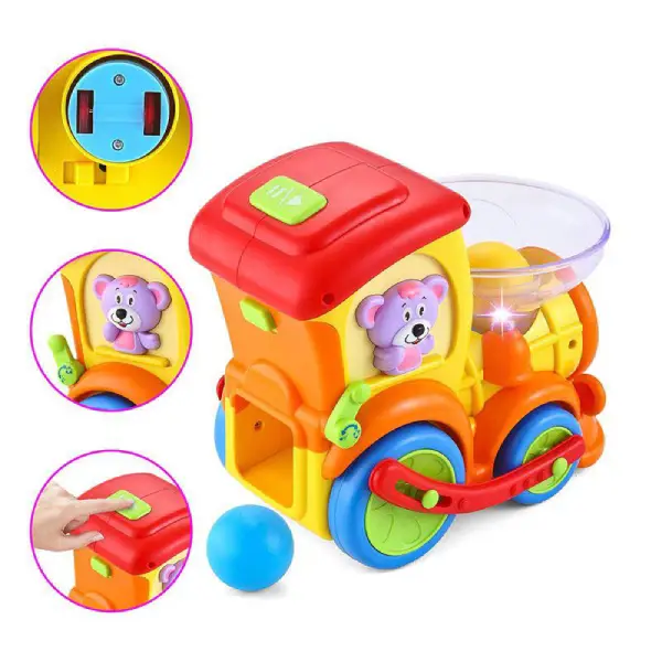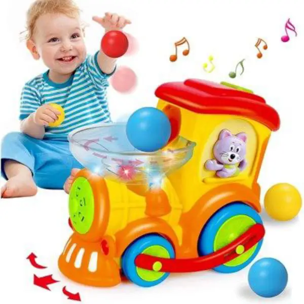 قطار اسباب بازی پرتاب توپ 958 هالی تویز Huile toys ترکیبی از رنگ و صدا با تقویت قوای خلاقیت برای کودک بالای یک سال و نیم است.