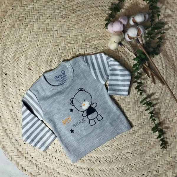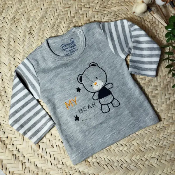بلوز آستین بلند نوزادی طرح خرس ملانژ هیرو