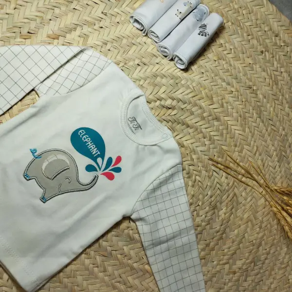 بلوز آستین بلند نوزادی طرح فیل TiTi