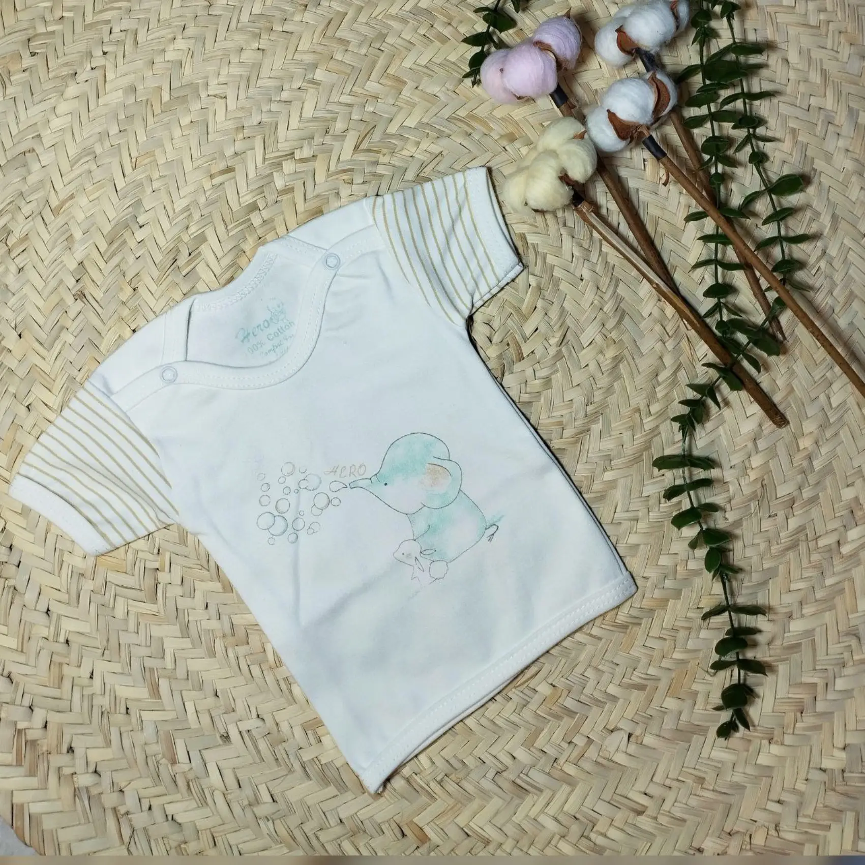 بلوز آستین بلند نوزادی طرح فیل و خرگوش هیرو