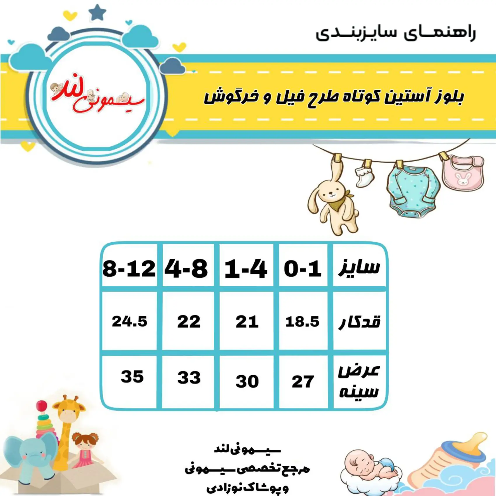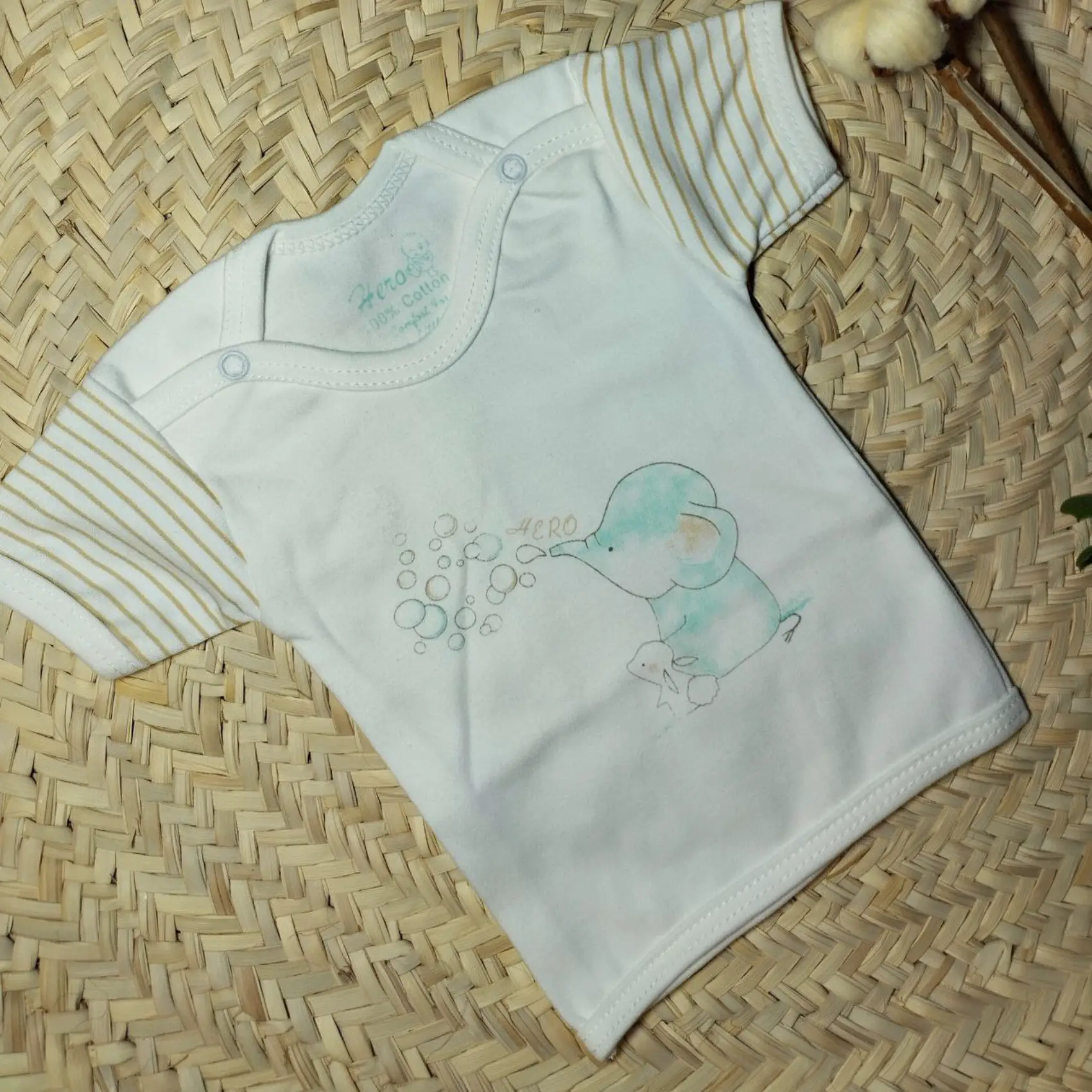 بلوز آستین کوتاه نوزادی طرح فیل و خرگوش هیرو