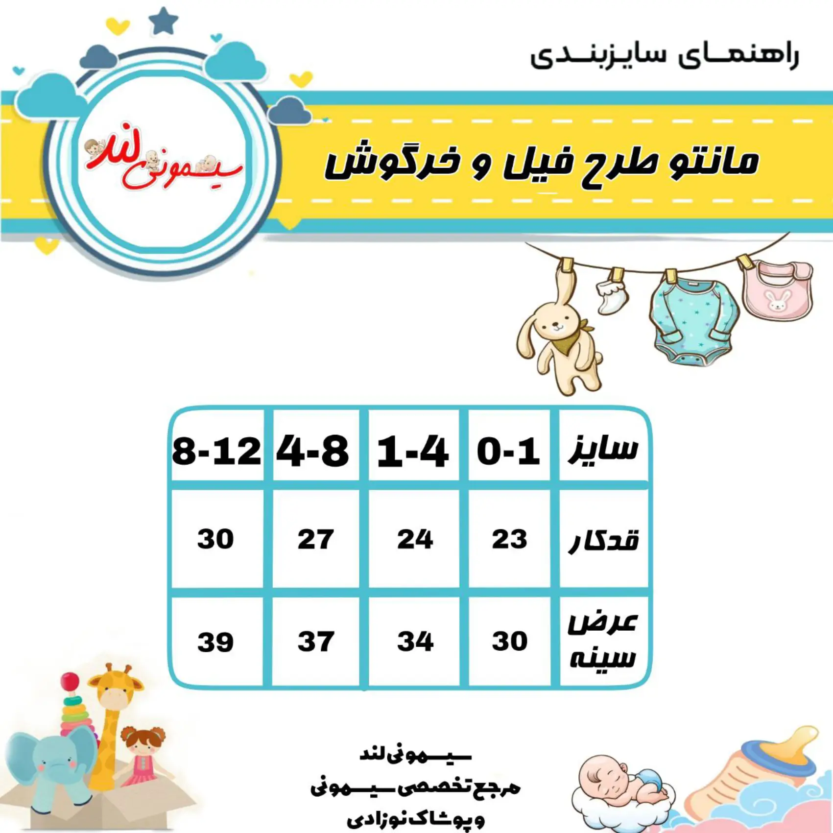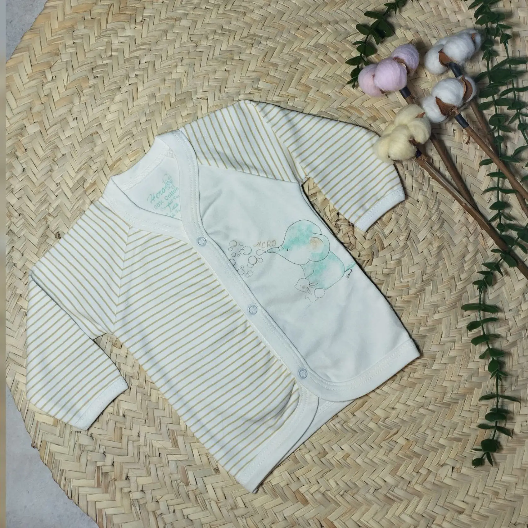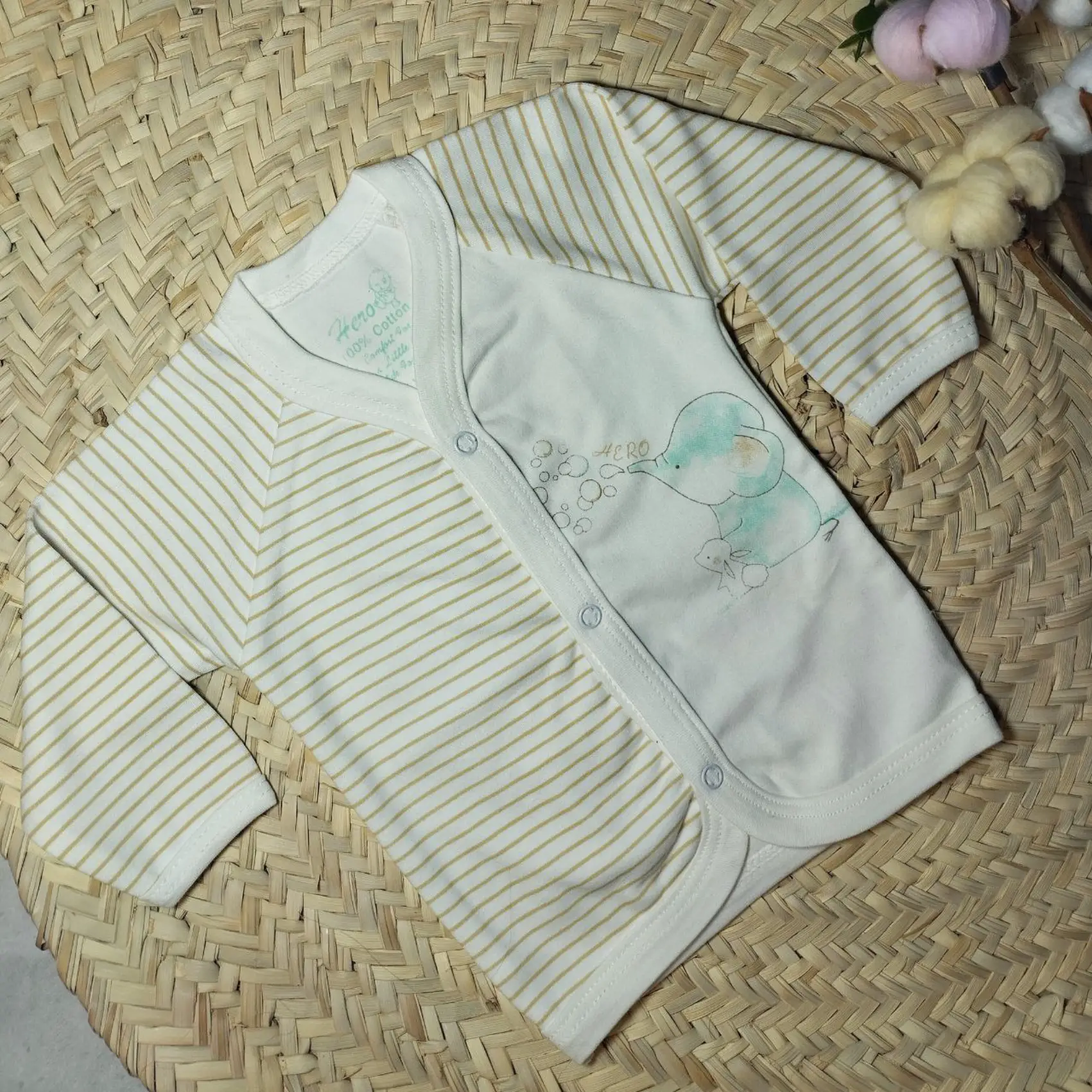 جلو دکمه دار نوزادی طرح فیل و خرگوش هیرو (مانتو نوزادی)