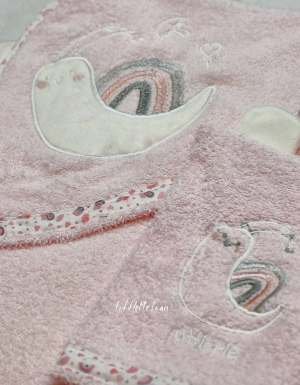 حوله نوزادی گلدوزی little me تمام خصوصیات گفته شده را داراست همچنین داخل بسته بندی این حوله زیبا یک عدد لیف با کیفیت از جنس خود حوله تعبیه شده تا هنگام شستشو بدن نوزاد آسیبی نبیند.