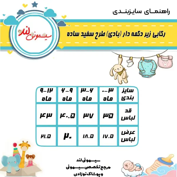رکابی زیر دکمه دار سفید ساده با توجه به قیمت مناسب و کیفیت عالی مناسب پوشاندن به نوزاد به صورت تک یا زیرپوش میباشد.