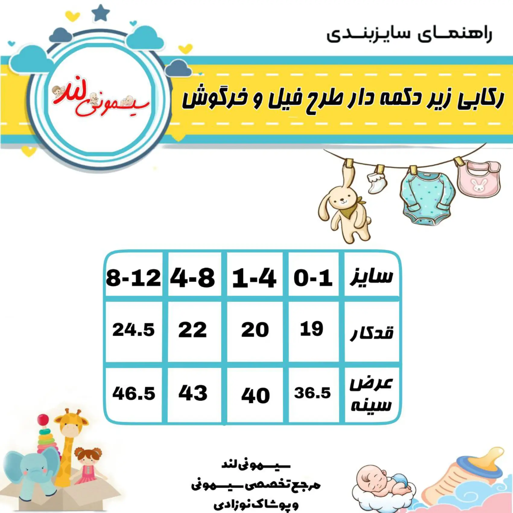 امروزه جهان و تمامی کشور های برتر در زمینه تولید و عرضه پوشاک اغلب پوشاک خود را از جنس نخ پنبه (Cotton) استفاده می کنند و جنس بسیار خوب این محصول باعث شده تا در تمامی کشور ها از آن استفاده کنند همچنین تنها پارچه ایی که از حساسیت و بروز قارچ و باکتری جلوگیری میکند پارچه نخ پنبه است و ما بع شما اطمینان میدهم تمام محصولات برند تی تی از پارچه نخ پنبه اعلا و دورو بافت تهیه شده است. این محصول در سایزهای مختلف و متنوع مناسب کودکان تازه متولد شده تا 1 ساله می باشد و می توانید مناسب ترین سایز را بر اساس سن و جدول سایز بندی برای کوچولوی خود انتخاب کنید. رکابی زیر دکمه دار طرح فیل و خرگوش هیرو تولید شده از پنبه می باشد، بسیار نرم و لطیف می باشد و کودک شما با پوشیدن این رکابی زیر دکمه احساس راحتی و آرامش خواهد داشت.