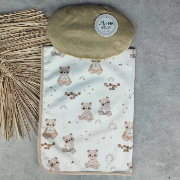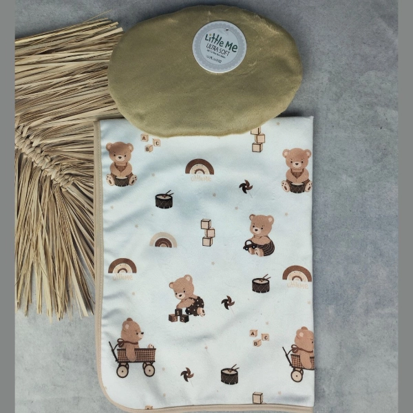 پتو دور پیچ کلاه دار مخمل کبریتی little me طرح تدی