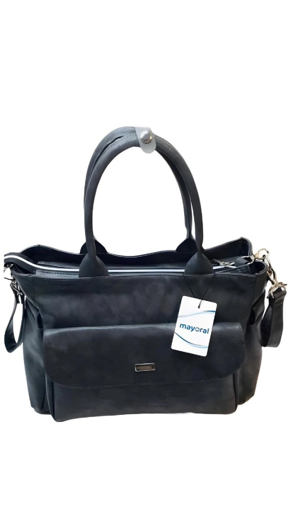 ساک لوازم مادر رو دوشی مایورال با رویه چرمی مقاوم و با کیفیت با یراق آلات درجه یک که استحکام این کیف را به شدت افزایش می‌دهد.