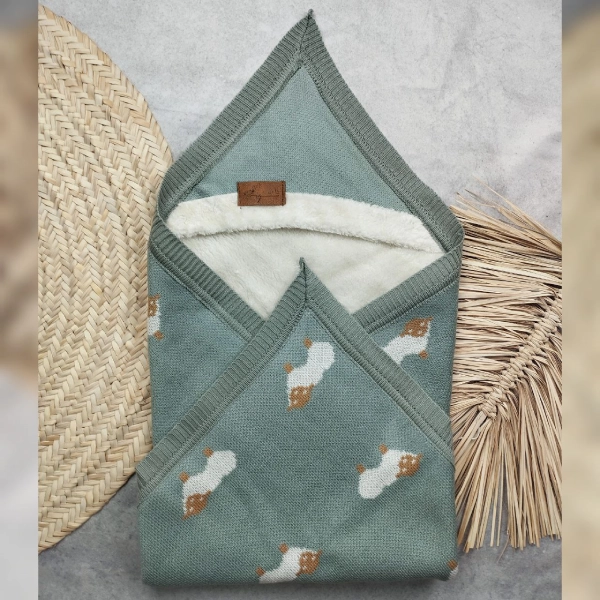 پتو دور پیچ نوزادی بافت کلاه دار لیزا طرح بره
