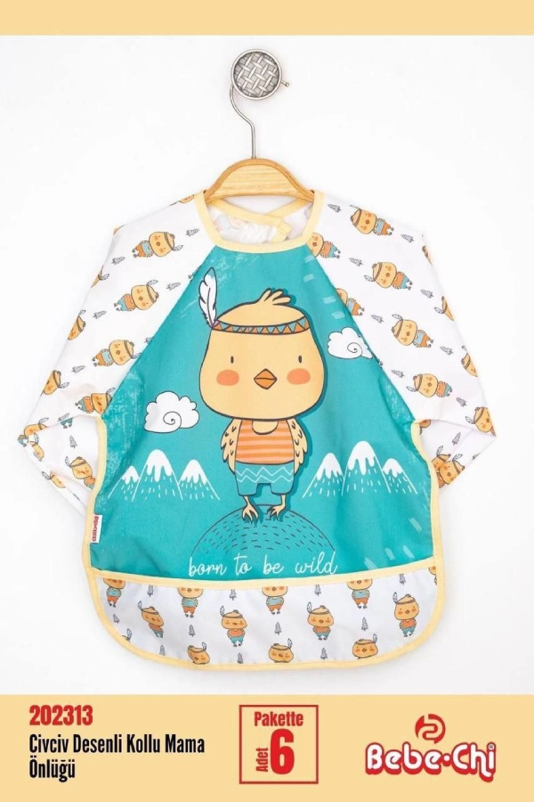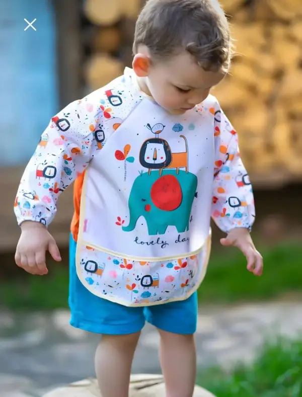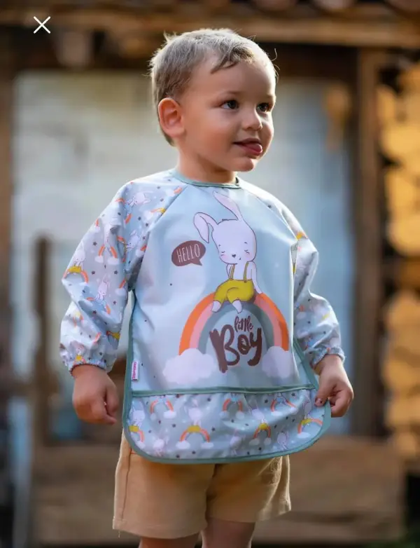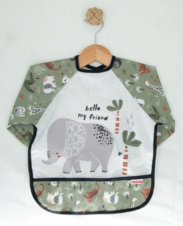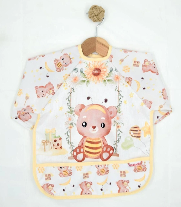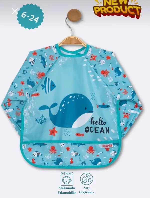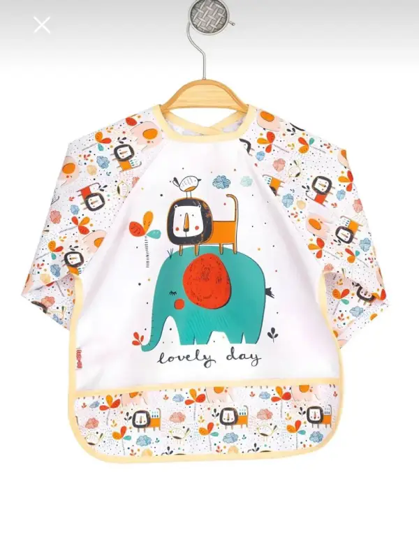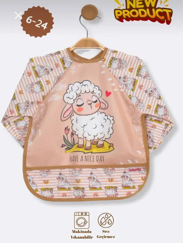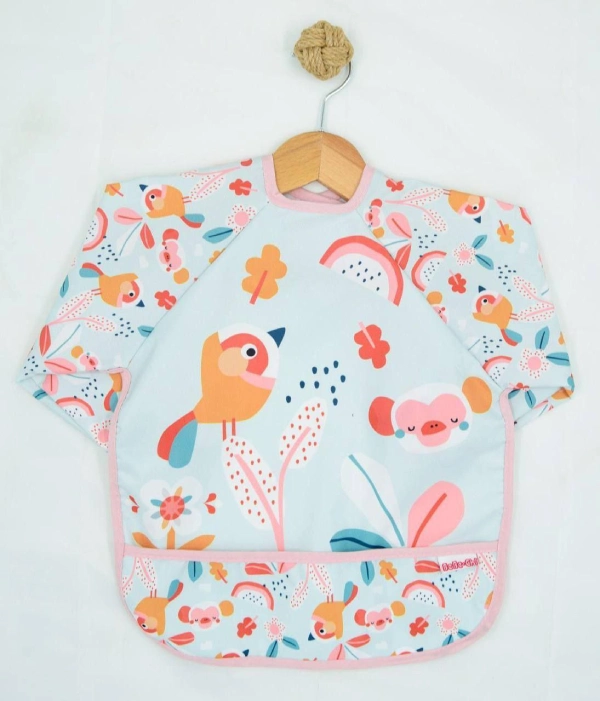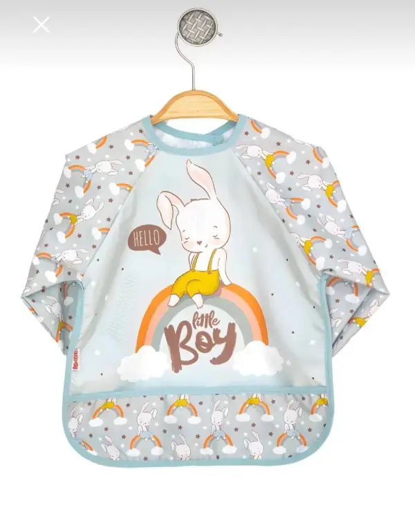 پیشبند آستین دار Bebe chi محصول ترکیه با رویه pvc ضد آب پوشش کامل در برابر نفوذ غذا و مایعات به لباس کودک دلبند شما.