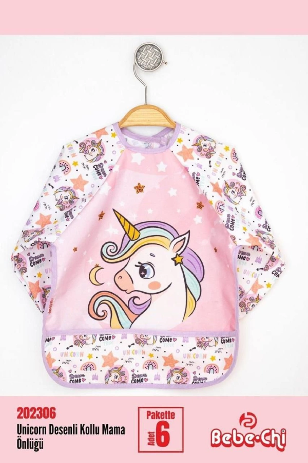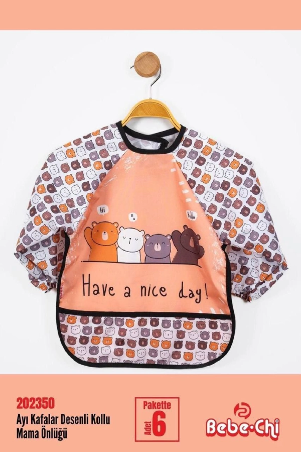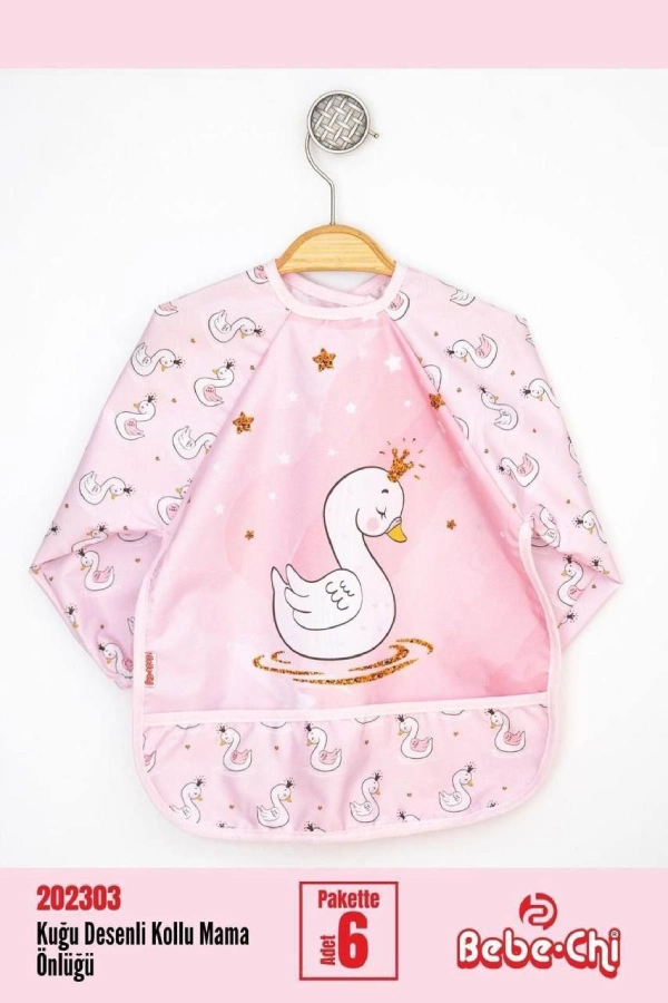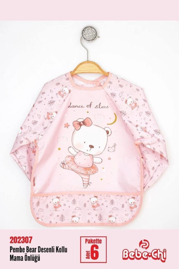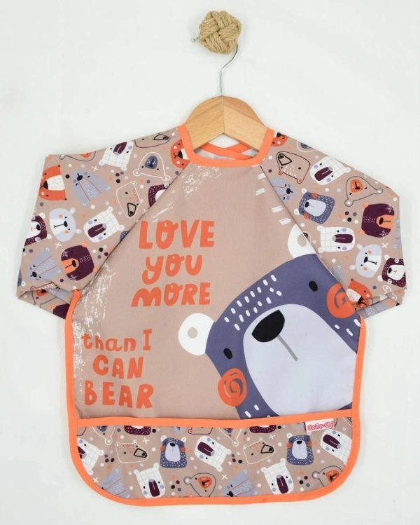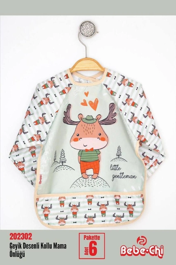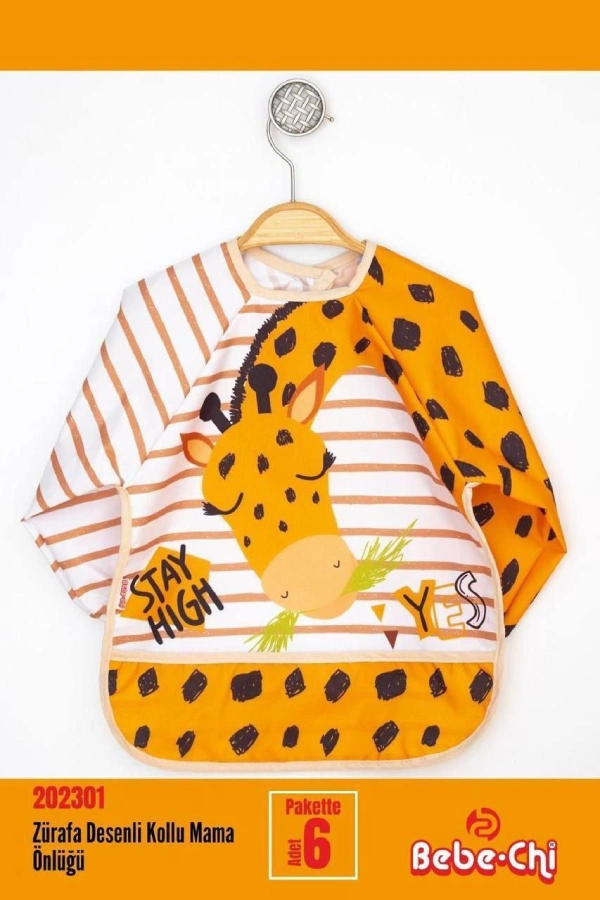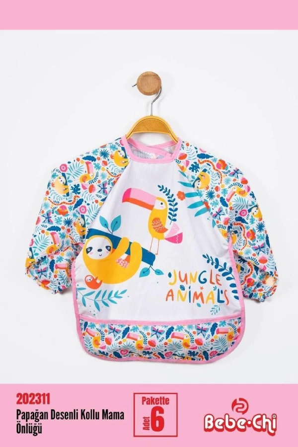 پیشبند آستین دار Bebe chi محصول ترکیه با رویه pvc ضد آب پوشش کامل در برابر نفوذ غذا و مایعات به لباس کودک دلبند شما.